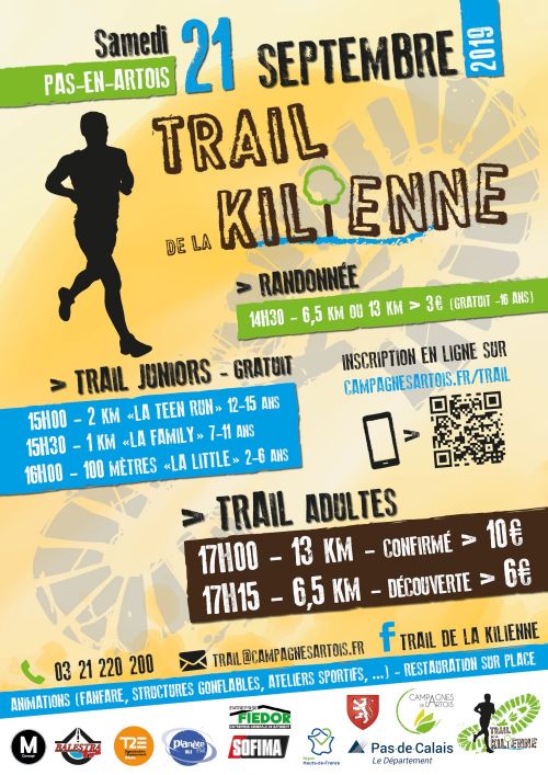 1er Trail de la Kilienne aura lieu à Pas-en-Artois avec des animations toute l'après-midi (fanfare, structures gonflables, ateliers sportifs...). Événement organisé par la Communauté de Communes des Campagnes de l'Artois en partenariat avec la commune de Pas-en-Artois et les associations locales.
