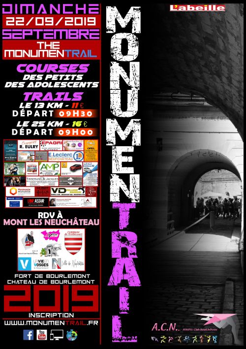 Pour la 2ème édition du Monumen'Trail, le club ACN vous propose de contempler un château du XII ème siècle, une abbaye oubliée et un fort militaire transformé en un grand jeu de société. Venez découvrir le patrimoine de la plaine de Neufchâteau autrement.