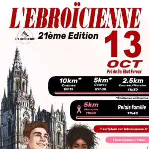 Chaque année depuis 2004, L'Ebroïcienne regroupe quelques 1000 coureurs répartis sur plusieurs courses : 1 km et 2.5 km pour les jeunes, un 5 km et un 10 km qualificatif pour les Championnats de France. Cette course est organisée par le club local Evreux AC Athlétisme en partenariat avec la Ville d'Evreux. Cette année, l'Ebroicienne vous offre la possibilité de courir une course de 5km en relais, vous permettant de partager un moment de convivialité.