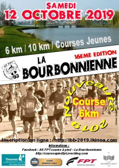 Courses à pied organisées par l'AS FPT avec l'aide du CE FPT sur route et chemin, traversant les plus beaux quartiers de Bourbon-Lancy (lac, parcs, jardins éphémères, vieux quartier, remparts...). 2 formats de course cette année.
