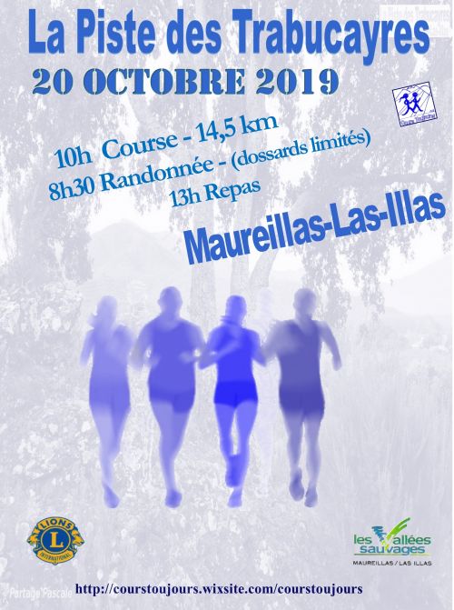 Circuit d’une longueur totale de 14,5 km. Départ place du village, puis boucle vallonnée empruntant divers types de chemins, retour sur la place du village de Maureillas. Temps limité: 2h15 pour la course, 4h pour la randonnée.