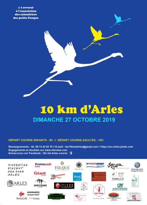 L’association des 10 km d’Arles organise la 23ème édition des 10 km d’Arles. Parcours en boucle intra-muros empruntant uniquement les routes goudronnées. La course est ouverte aux licenciés(es) et non licenciés(es) des catégories cadet, junior (autorisation parentale exigée pour les mineurs(es)), espoir, sénior, M1, M2, M3, M4 et plus, masculin et féminin. Courses enfants à partir de 8h50 (300m – 1km – 1,3km – 2,6km).