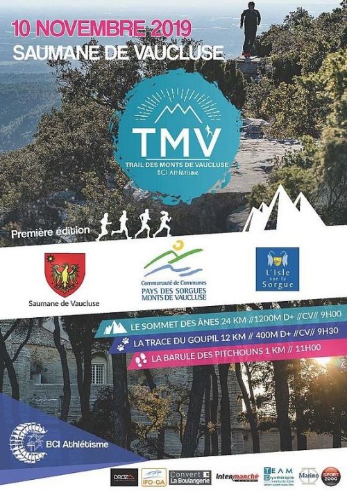 Première édition du TMV- Trail des Monts de Vaucluse organisée par le BCI Athlétisme, en partenariat avec le Ville de L'Isle sur la Sorgue. Un Trail avec des parcours de caractères, tracés par des passionnés qui sillonnent les Monts de Vaucluse depuis de nombreuses années.