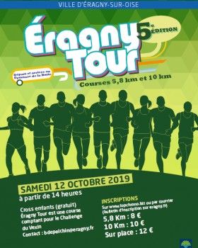 5ème édition de l'Eragny Tour. 3 Cross enfants (gratuits) sont proposés selon l'année de naissance. Éragny Tour est une course comptant pour le Challenge du Vexin, deux parcours (payants) sont proposés aux ados et adultes. Dans le cadre de cette course une récolte de fonds est organisée afin de soutenir l'association Laurette Fugain dans sa recherche dans la lutte contre la leucémie.