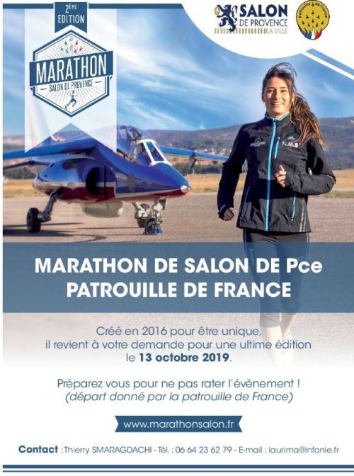 Le Marathon de Salon de Provence est organisé par l’association Salon marathon. Les courses sont homologuées et labellisés par la FFA. Le Marathon revient pour une ultime édition avec la participation exceptionnelle de la Patrouille de France qui survolera la ligne de départ du Marathon.