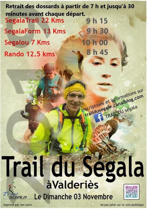 Le profil autour de valderiès est idéal avec des terrains variés. Parce que la nature est exceptionnelle autour de notre village, un maximum de chemins surprendront par leur diversité. Le trail du segala et valderiès ont un point commun: L'accueil et la convivialité. Notre volonté est de conserver l'esprit trail, le respect de l'environnement, des coureurs et marcheurs.