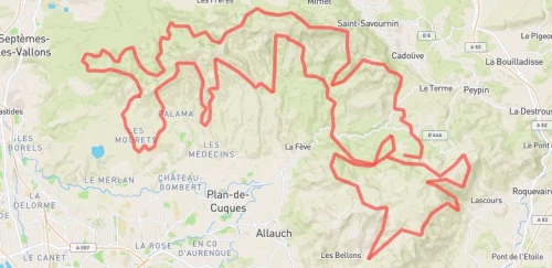 Un parcours fait pour les sprinters. Un mix entre single track et pistes larges et un retour par un magnifique sentier en balcons au dessus de Pichauris. Des vues magnifiques sur tous les massifs environnants (Etoile, Calanques, Sainte Victoire, Sainte Baume, etc.).