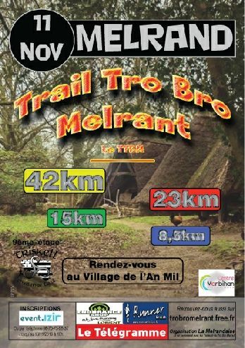 L'association de la melrandaise vous propose, cette année 2018 4 circuits, dont un 8,5km, 15km, 23km et 42km vallonnés à souhait, sur de beaux sentiers dans la campagne de Melrand, avec des passages près de la Sarre et à côté de 3 chapelles (La Madeleine, le Guelhouit et Saint-Fiacre), avec en plus un départ, un passage et une arrivée à proximité du village de l'An Mil.