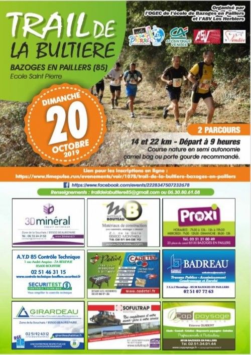Trail de la Bultière avec 2 parcours trail. Parcours 80% de chemins, coteaux, bords de rivière et tour du barrage.