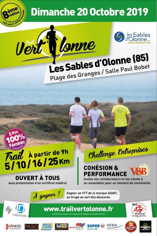 8ème édition du Trail La Vert'Olonne, un Trail 100% Nature en forêt d'Olonne La Vert'Olonne, c'est le Trail 100% Nature de la forêt d'Olonne-sur-Mer : vous emprunterez les sentiers forestiers, les sous-bois, les coupe-feu et les plages qui bordent la forêt d'Olonne-sur-Mer. Pour cette nouvelle édition, la Vert'Olonne vous propose de nouveau 4 distances.