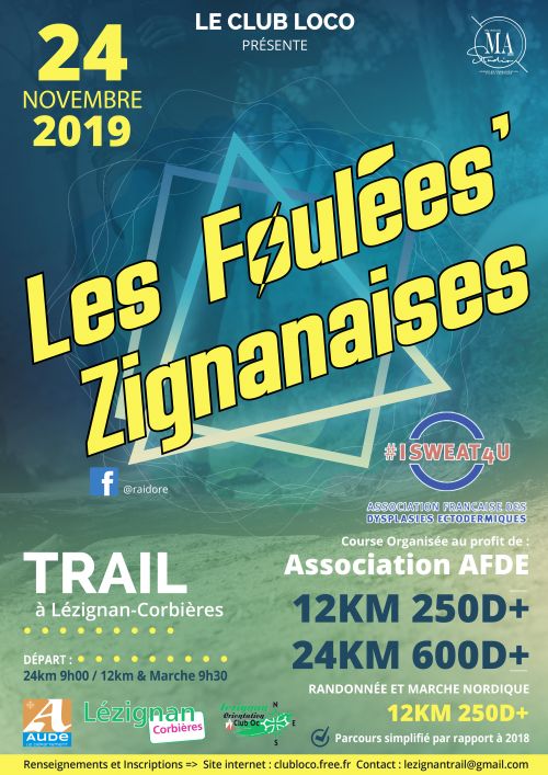 Trail avec 2 parcours de 12 et de 24km au départ de Lézignan-Corbières, alternance de mono-traces et sentiers.