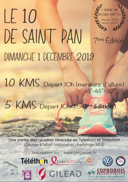 Le 10 de Saint Pan est qualificatif pour les championnats de France des 10 kms. La course se déroulera sur le même parcours que les éditions précédentes plat et sans difficulté. Elle est ouverte à tous quelque soit votre niveau de pratique Le départ se fera un peu avant le pont qui enjambe la Vézère à l'entrée de Saint-Pantaléon et l'arrivée près de l'espace vézère Causse au centre du bourg.