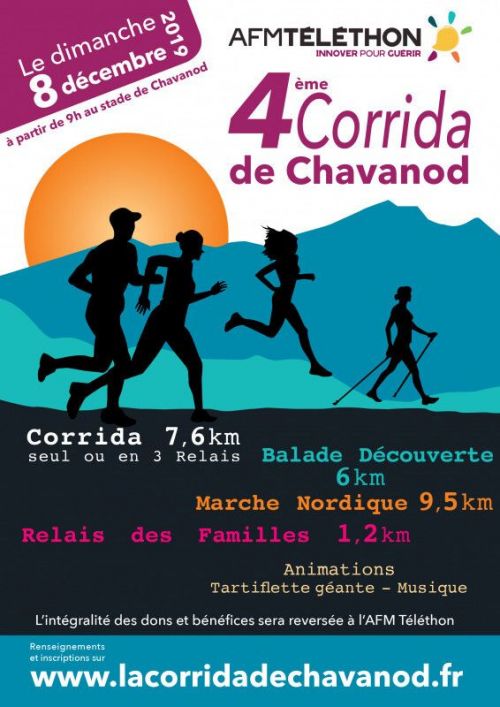 Le club de course à pied, LA RONDE DE CHAVANOD organise sa troisième corrida au profit du téléthon, 100% des bénéfices seront reversés au Téléthon.