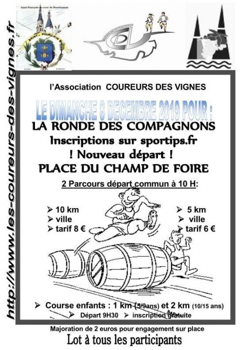 Venez découvrir à travers 2 tracés la Ronde des Compagnons de 5 ou 10 km à travers les rues et bords de Sioule de St Pourçain Sur Sioule. Une récompense à chaque participant.