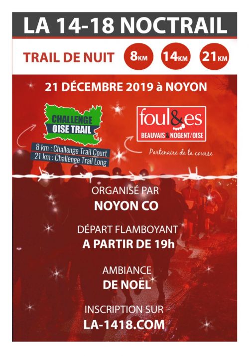 Trail de nuit, dénivelé important. Départ en centre ville de Noyon pendant les fêtes de NoelCat. autorisées JU->V5.