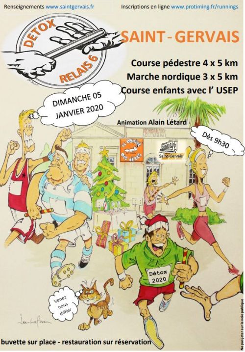 • par équipe de 3 pour les marcheurs nordiques Chaque participant de l’équipe devra effectuer une boucle de 5 km au cœur du village de Saint-Gervais Départ de la course à 10 h devant la salle omnisports.