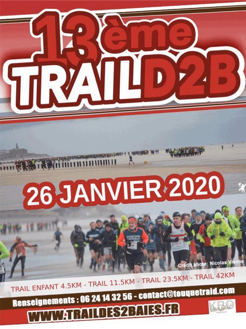 Le trail D2B est une course à pied nature le long du littoral de la Côte d’Opale. Particularités: le sable fuyant des dunes, le sable dur sur la plage, une météo rude à cette époque, c’est une course taillée pour les aventuriers ! 4 courses: un marathon de 42km pour les compétiteurs aguerris, une belle préparation pour le marathon des sables ou les ultra-trails sur un parcours exigeant; un trail de 21km accessible au plus grand nombre, un trail court de 11km ainsi qu’un parcours de 3km pour les plus jeunes.