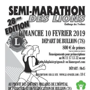 Semi-Marathon des Lions avec 21,1 km au départ du gymnase de Bullion sur une seule boucle sur voies goudronnées à faible circulation, au cœur du Parc Naturel de la Haute Vallée de Chevreuse.