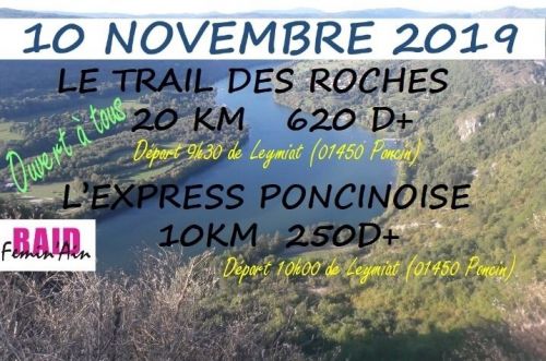 Le Raid Fémin'Ain organise le Trail des Roches avec 2 parcours trails au départ du Hameau de Leymiat, Place du Pré Rond.