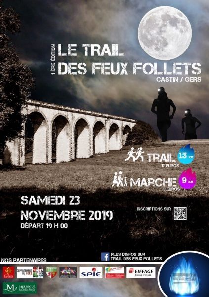 1er Trail des Feux Follets avec un parcours nocturne de 13km et une marche. Organisé par La Castin Team.