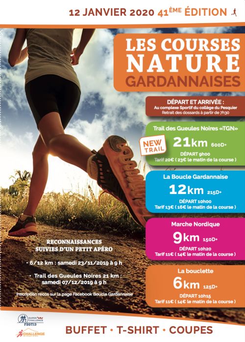 La boucle fait peau neuve ! Pour sa 41ième édition : NOUVEAU UN TRAIL !!! 21 km 600D+ Tracé par des passionnés de trail sur un parcours exceptionnel. Un profil qui en surprendra plus d’un… piquant à souhait il ravira les amateurs de bosses avec de sérieux coups de Q et permettra aux débutants de se frotter à la discipline dans un cadre préservé. Egalement une marche nordique 9kms 180D+