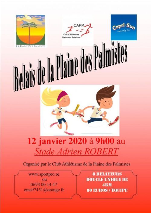 Le Relais de La Plaines des Palmistes est une épreuve de 32 km en relais de 8 coureurs (4 km par coureur) disputée au cœur du village de La Plaine des Palmistes.