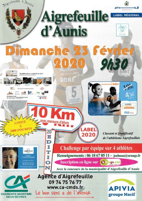 10 km de l'Athlètisme Aigrefeuillais sur une boucle de 10km à parcourir sur des routes goudronnées peu fréquentées en campagne (mesure méthode I.A.A.F.)