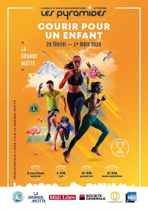 27ème édition des Courses les Pyramides qui se dérouleront à la Grande Motte. Elles sont organisées par le Lions Club de La Grande Motte en collaboration avec la ville de La Grande Motte et Midi Libre. Le départ des courses sera donné Avenue Robert Fages à la Grande Motte, les arrivées, se feront sur la même ligne que les départs. Parcours plat et roulant sur route et piétonniers, étang, golf et retour en front de mer