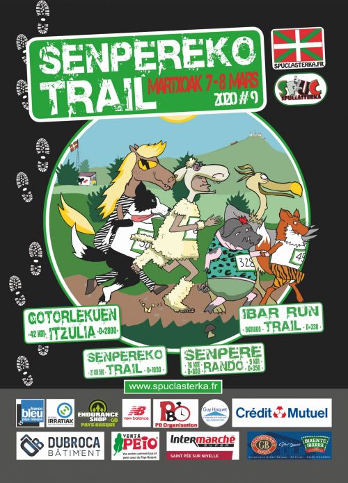 9ème édition du Senpereko Trail. Ce Trail se déroulera sur une distance de 21.500km et un dénivelé positif de 1050m. Le départ aura lieu sur le fronton du quartier Ibarron de Saint-Pée sur Nivelle.