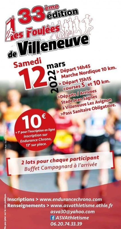 Les Foulées de Villeneuve les Avignon partiront et arriveront du stade Jean Sagnes. Vous aurez le choix entre une Marche Nordique de 10 km (inscription sur place uniquement), une course de 5 km et une de 10 km.