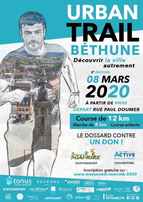 Envie de découvrir Béthune comme vous ne l’avez jamais vu ? Rendez-vous pour la première édition de l’Urban Trail de Béthune ! Cette course de 12 kilomètres au cœur de Béthune est à but totalement caritatif ! Courez pour une bonne cause. Pas de dossard à payer, juste un don à amener pour les Restos du Cœur (conserves, alimentaire, financier, puériculture, hygiène ou autre). N'hésitez pas à y aller nombreux pour découvrir la ville de Béthune de manière insolite.