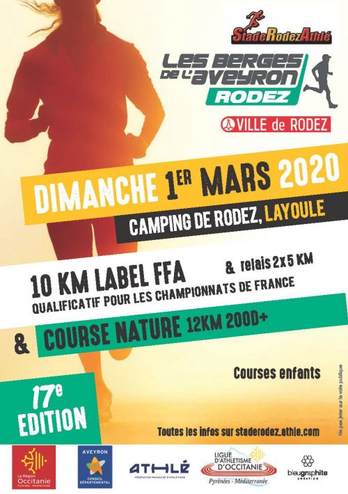 17ème édition des Berges de l'Aveyron. Le Stade Rodez Athlétisme organise un 10KM et une course nature des Berges de l’Aveyron.