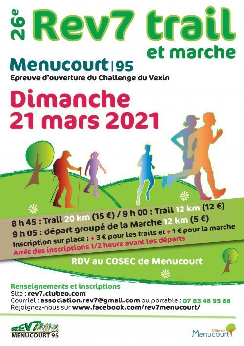 Le Rev7 Trail se déroule à 99% sur les chemins boisés de l'Hautil et champêtre du Vexin français. Quelques chemins sauvages et des surprises. Une petite incursion chez nos voisins des YVELINES (78). Pour cette Edition privilégiez l'auto-suffisance (habituellement des ravitaillements sont prévus). Notre course est l'épreuve d'ouverture du challenge du Vexin. Au delà de la course c'est aussi l'échange avec vous tous qui nous motive. sur ce dernier POINT nous serons certainement limités nous verrons bien ce que disent les futurs protocoles (impact sur les podiums, les ravitos…). nous ouvrirons les inscriptions un peu plus tard que d'habitude (mi ou fin janvier)