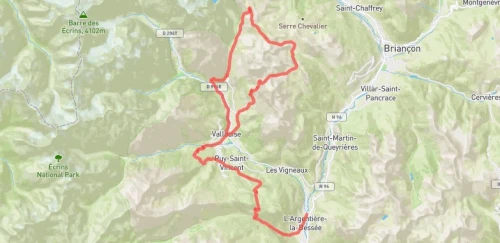Véritable trail en montagne avec 80 % du parcours au dessus de 2000 m d'altitude. Avec un départ de Vallouise, via le col de Vallouise 2600 m,le col de la Trancoulette 2200 m et enfin le col de la Pisse à 2500m. Départ de Vallouise à 7h00