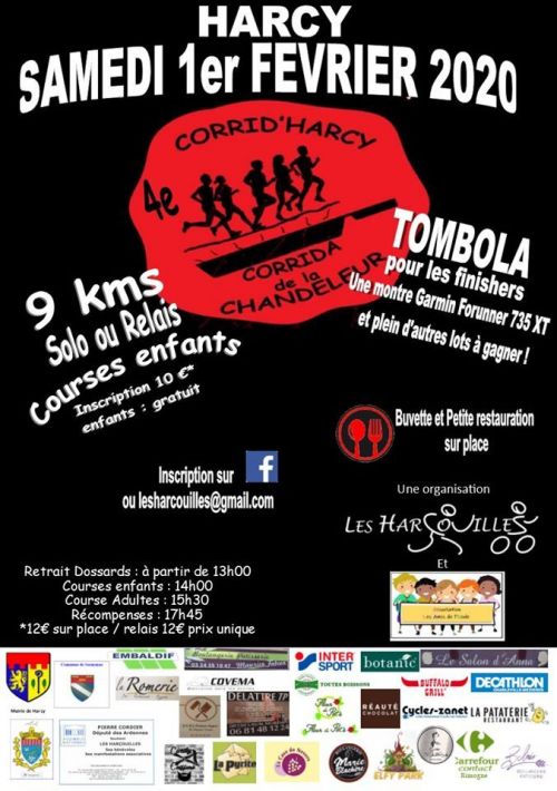 La Corrid'Harcy sur un parcours avec routes fermées, trois boucles égales avec un passage dans un chemin boisé .Un relais en équipes de trois coureurs est également proposé.