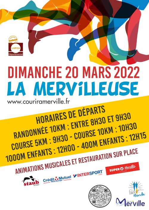 La Mervilleuse est une course pédestre sur routes et chemins, au départ du stade Charles Rattez, rue des Prêtres à Merville. Parcours sur route et chemins avec de nombreuses animations musicales le long du parcours et animation au départ et à l'arrivée (sur stade)