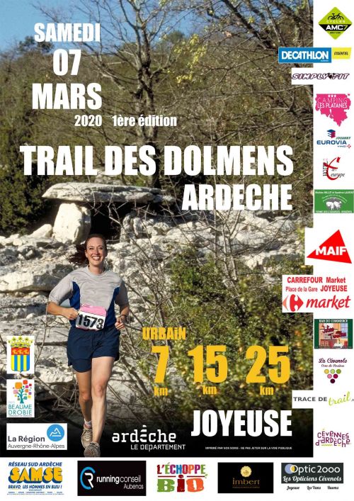 1ère édition du Trail des Dolmens-Ardèche. Petit village situé au débouché de la vallée de La Beaume, Joyeuse est une des portes d’entrée vers les Cévennes Ardéchoises.