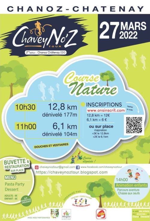 L’association « Le Sou des écoles de Chanoz Chaveyriat », assistée de nombreux bénévoles, organise le ChaveyNo’z Tour, Course à pied nature entre Dombe et Bresse, sur les petites routes et chemins des communes de Chanoz Châtenay et Chaveyriat. 2 épreuves : 12.8km ou 6.1km, suivi d'un repas et d'une animation enfants l'après-midi.