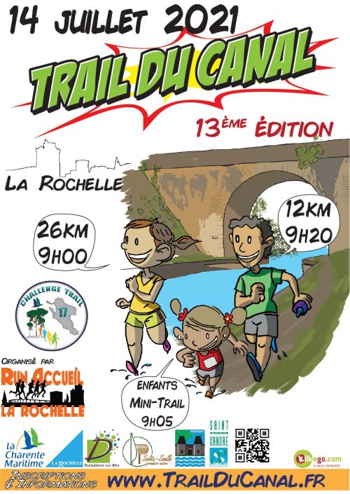 RUN ACCUEIL LA ROCHELLE organiser la 13ème édition du TRAIL DU CANAL. Nous proposons 2 distances et une course enfants. Les boucles sur lesquelles les coureurs évoluent en alternance sur les trois niveaux du canal, en empruntant la Vélodyssée, des sentiers escarpés et les berges humides parfois boueuses sont aussi pimentées par le franchissement de plusieurs ouvrages d’art de façon inattendue.